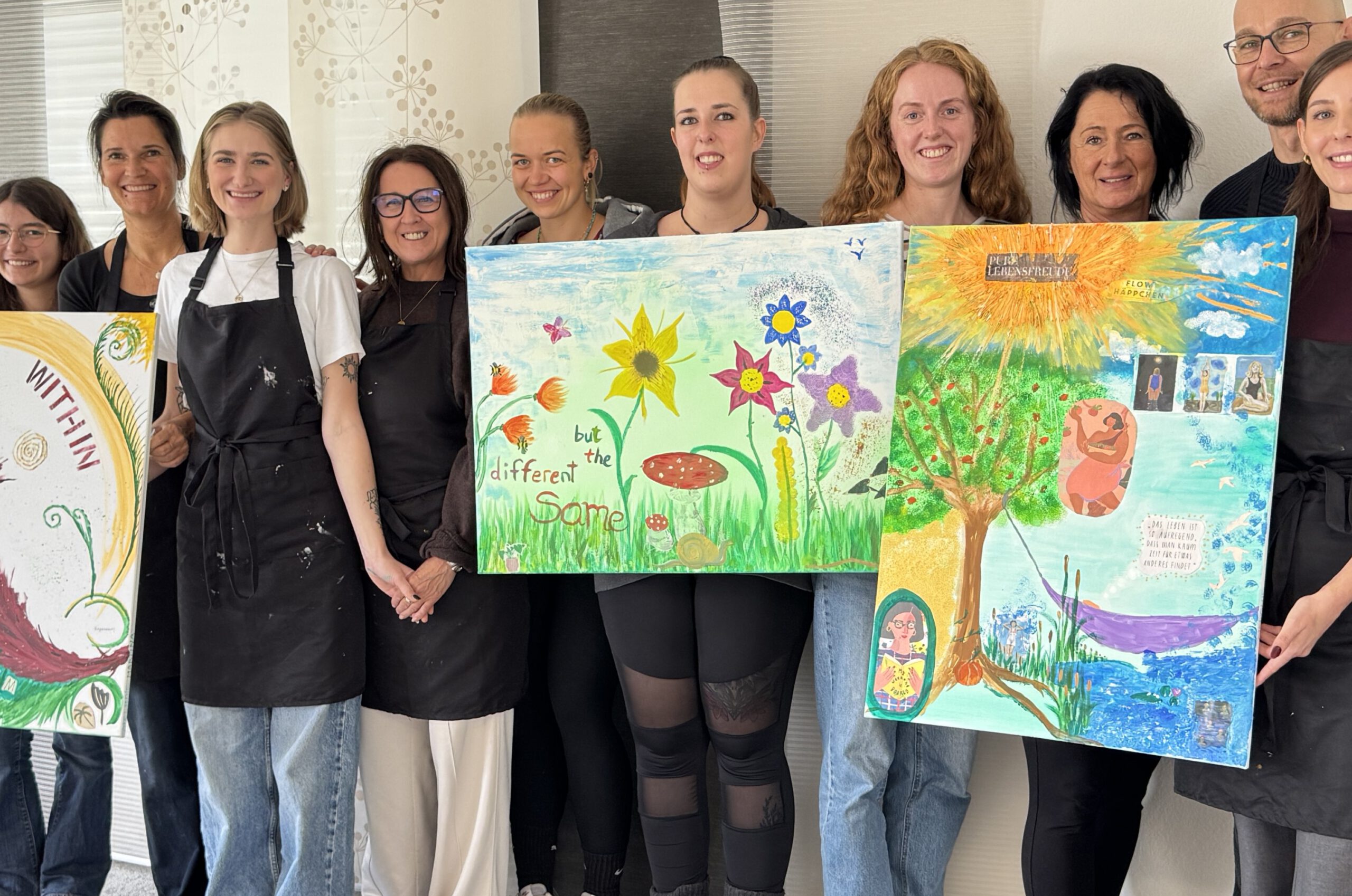 Du suchst nach einem individuellen Team-Event, hast vielleicht schon ein Motiv oder ein Thema ins Auge gefasst und möchtest, dass alle motiviert und stolz aus dem Workshop gehen? Gerade über kreative Auszeiten kann man auf neue Arten zusammenfinden. Für Teamevents biete ich Optionen, um die Teamdynamik zu stärken und gleichzeitig kreative Fähigkeiten zu fördern. Diese Aktivitäten sind nicht nur unterhaltsam, sondern auch lehrreich und tragen zur Entwicklung von Soft Skills bei. Lass‘ uns euer Teambuilding gemeinsam planen.